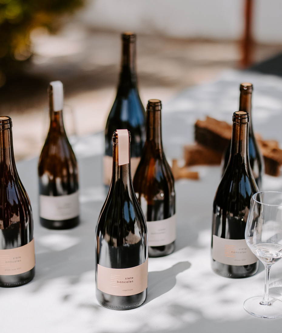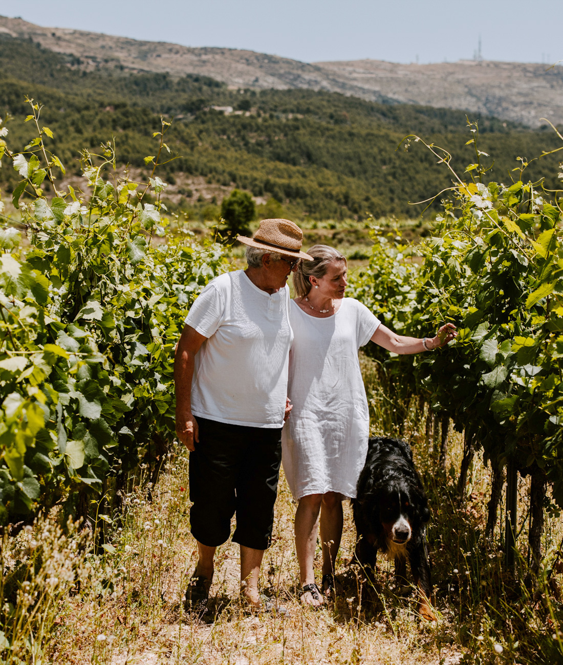 Wir sind passionierte Weinliebhaber und echte Naturfreunde. Mit unseren Kindern (teilweise schon flügge), unseren Sennenhunden und Katzen leben wir auf der finca seguró, und führen unser Naturweingut siete bancales und unsere Schlaffässer los barriles.